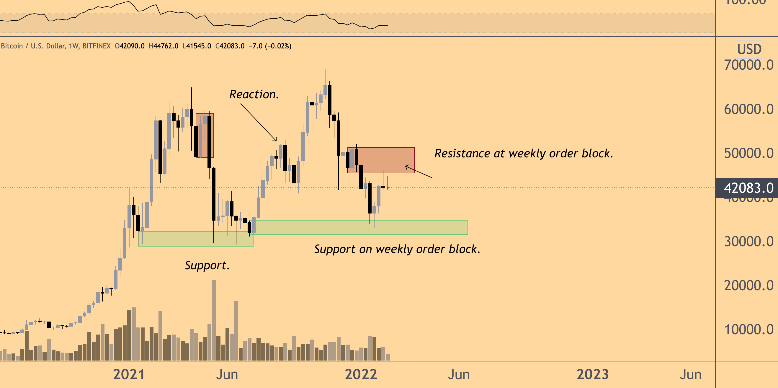 “Nothing really changed. This one is still the one I'm looking at for Bitcoin in which I'd prefer to see a break of this weekly order block. If that doesn't happen, then I'm not bullish.”
