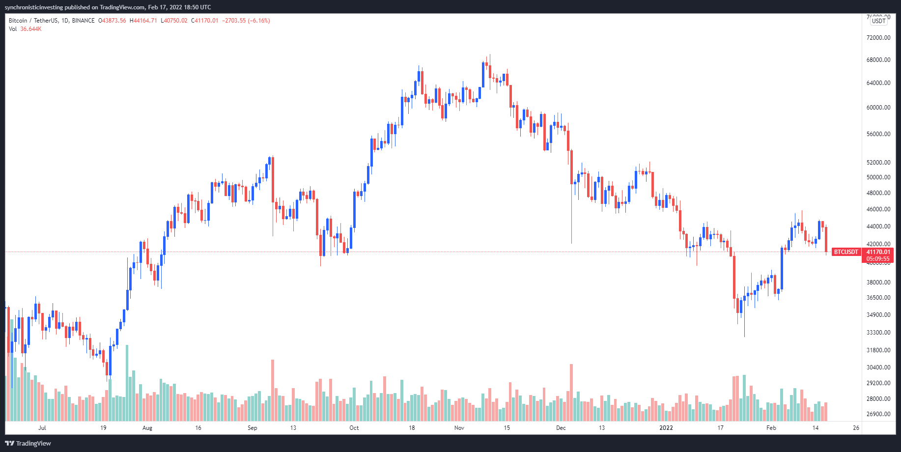 The quick-moving volatility that the cryptocurrency market is known for reared its ugly head on Feb. 17 as ongoing tensions between Russia and Ukraine and the rest of the world walloped financial markets around and briefly plunged Bitcoin price below the $41,000 level.